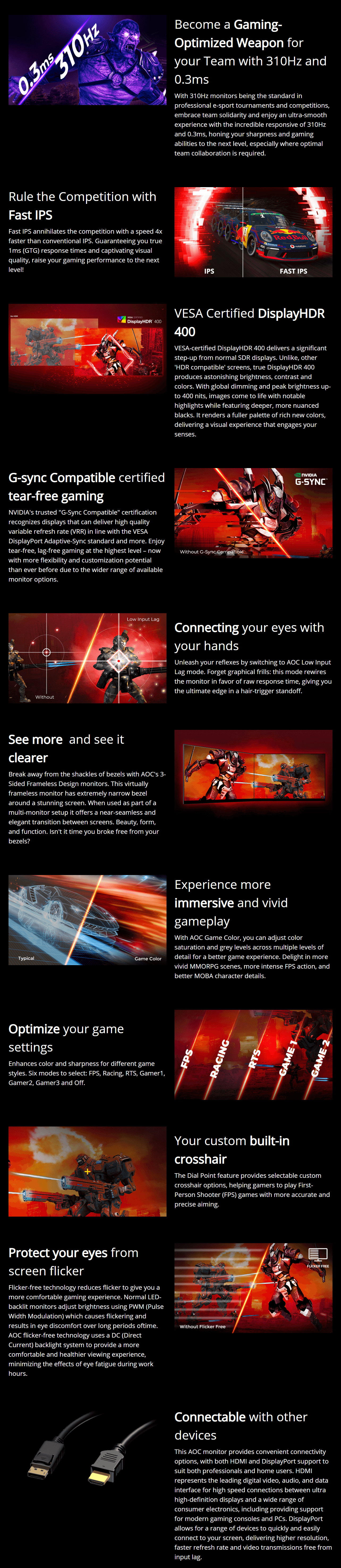 1920 × 1080 @ 310Hz (OC)– DisplayPort1.4; 1920 × 1080 @ 300Hz – DisplayPort1.4; 1920 × 1080 @ 240Hz – HDMI2.0 |