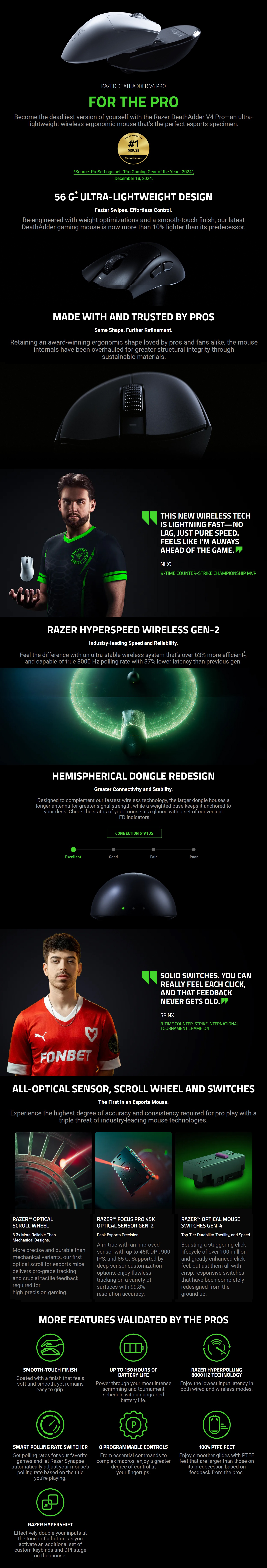 Razer DeathAdder V4 Pro Sports Wireless Gaming Mouse - Black